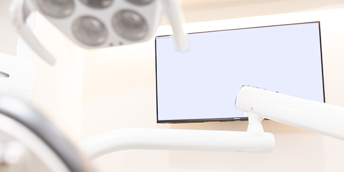 診療台ごとに設置しています。レントゲンや治療計画を大きな画面で確認しながら説明を受けられます。