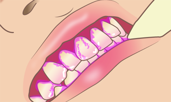 染め出しとは、専用の染め出し液を使用して、磨き残しのある部位に色をつける方法です。歯科医院での歯みがき指導でも良く行われる方法で、磨き残しのある部位が目に見えて分かるため、ご自身のお手入れ方法の癖をすぐに知ることができます。