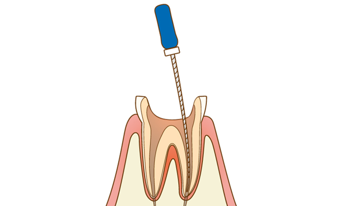 虫歯が神経まで達している時にする治療です。麻酔をして歯を削って神経を除去します。歯の内部を無菌化する処置が必要なので、根の中がキレイになるまで消毒します。根の部分を洗浄して最後に炎症を止める薬を入れて無菌化するまで繰り返します。その上に型どりをしてかぶせ物をしていきます。